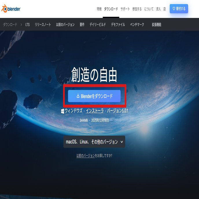 無料ソフトBlenderは下記リンク先からソフトをダウンロードします。