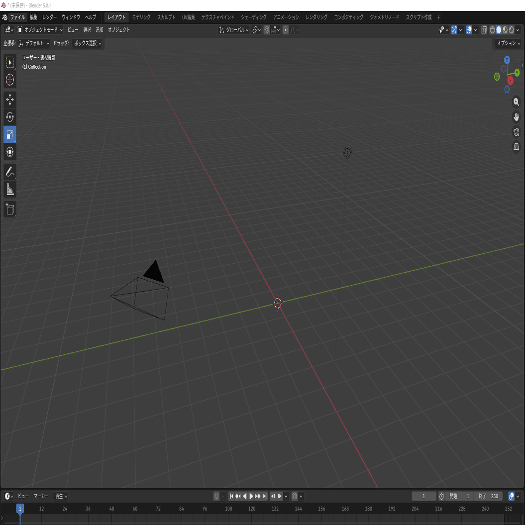 Blenderは初期設定だと1つのマスが1m換算なので、すごく小さく見えていますが大丈夫です!